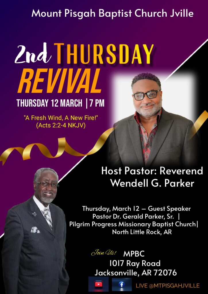 Every 2nd and 4th Sunday. 1026 Ray Road, Jacksonville, AR.